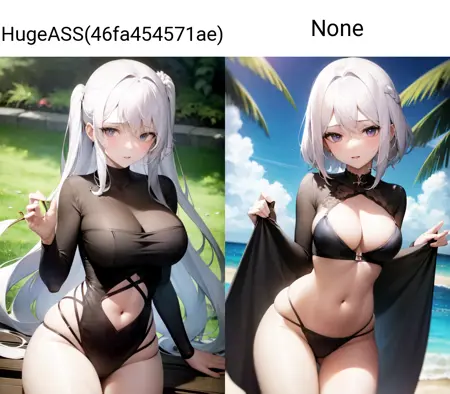 Danbooruの通常のプロンプトを使って発動させれば、その威力が実感できます。