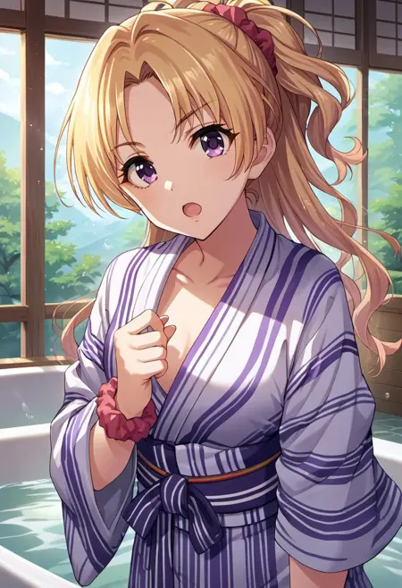 トリガー単語: kiryuu tsukasa, ブロンドの髪, 紫の目, 長い髪