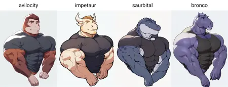 avilocity (there might be some problems with the face), impetaur, saurbital, bronco