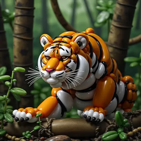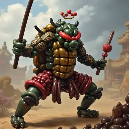 一个专为 Flux1.D 设计的 LoRa 模型,用于生成具有夸张美学风格的迷人且富有童趣的插画,灵感源自气球雕塑艺术。该模型汲取气球雕塑的精髓,融合了奇幻元素与鲜明细致的设计手法。每个作品均展现出圆润的形态、光泽表面和夸张的比例,这正是气球艺术的标志性特征。