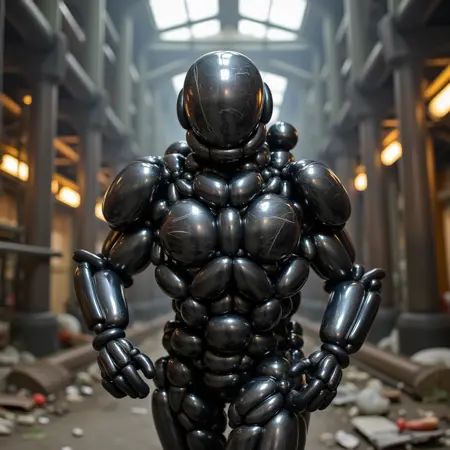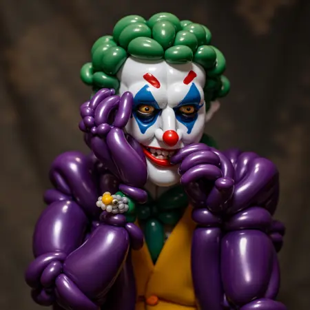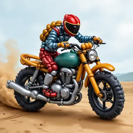 独特风格: 该模型创造出具有充气、橡胶质感的角色与场景,营造出由多彩闪亮气球制作而成的视觉错觉。