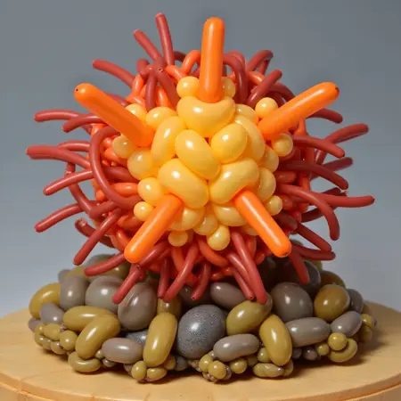 自定义提示技巧: 保持简洁。例如,提示词 “Ball00nArt, a cat” 将生成一幅工作室风格的气球猫雕塑,而提示词 “Ball00nArt, a cat, in a forest” 将生成森林场景中的气球猫雕塑。有时可加入 “made out of balloons” 以增强渲染效果。