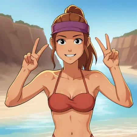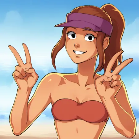 056girl, 1girl, solo, brown hair, ponytail, black eyes, visor cap,