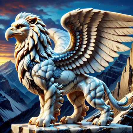 模型生成的图像展现出精致细节与宏伟规模的惊人结合,捕捉了狼、狮鹫和泰坦等生物的精髓,它们皆被大理石天然的纹理与脉络所束缚。从傲立于雪峰之上、披着宏伟大理石毛皮的狼,到威严的石质泰坦,每一处细节都以非凡的写实手法呈现,令冰冷坚硬的大理石焕发生机。