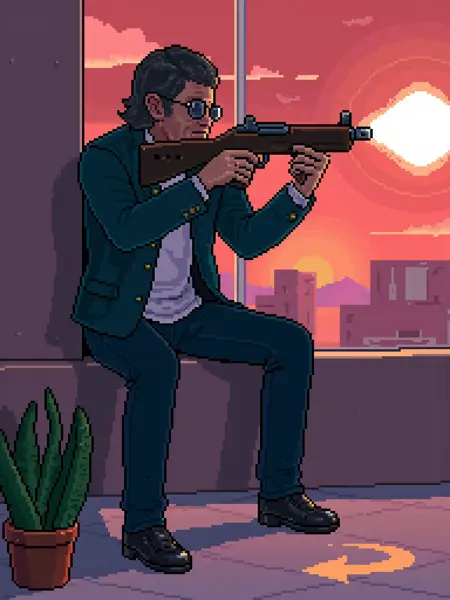 Hard Edge style pixel art. There is no specific trigger word, just use "pixel art" or "pixel art style".