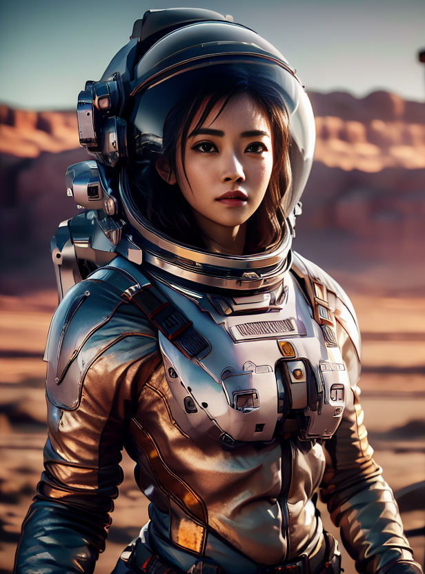 该lora用于为人物穿上宇航服,本次对宇航服的头盔和衣服进行了一定的分离,如果强调头盔,可以输入 “space_helmet” ,身体则输入 “firmament”,一整套最好把两个都加上。