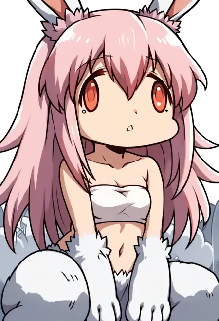 Rabbit Form: uiinaba, rabbit_form, 1girl, medium breasts, animal ears, white fur, animal hands, bandeau, rabbit tail