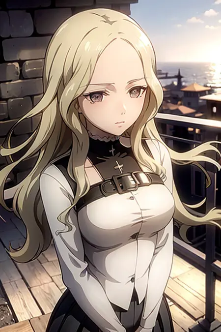 테레사의 전통적인 의상이 필요하신 경우, 다음을 추가해 주세요: armor, cape, shoulder armor, bodysuit
