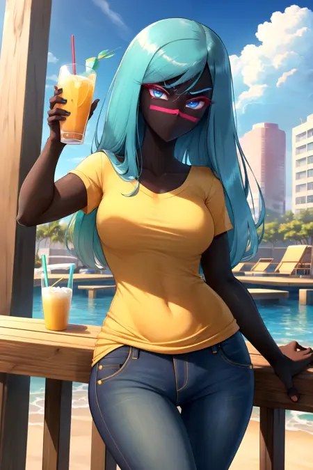매우 화났고 아주 섹시함. 이 캐릭터를 제대로 작동시키기 위해 많은 조정과 테스트를 거쳤다. 캐릭터는 입이 없으며, 얼굴에 매우 특별한 문양이 있고, 눈 주변에 매우 세밀한 디테일이 있으며, 무엇보다도 대부분의 사진이 만화 스타일이다.