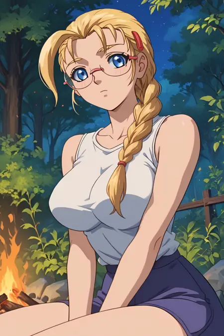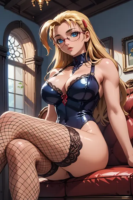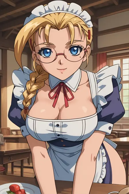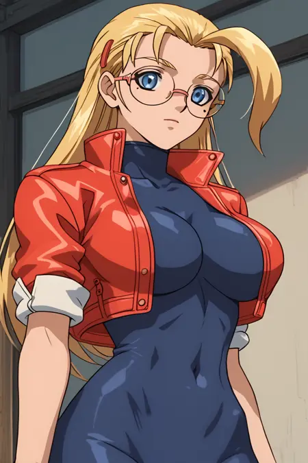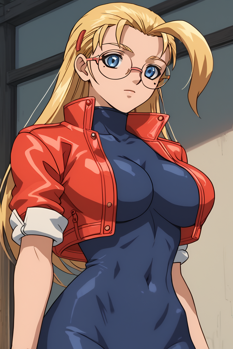 Miu_Fūrinji, 1소녀, 금발, 큰 가슴, 눈 밑 점, 파란 눈, 큰 가슴