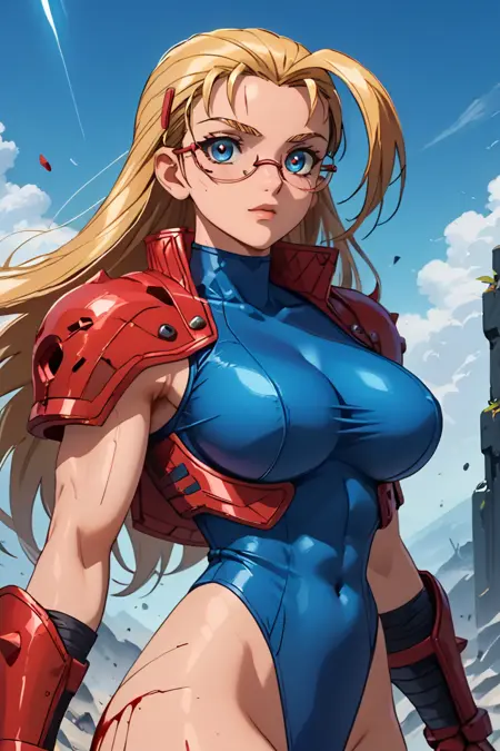 유니타드, 빨간 재킷, 짧은 재킷, 배꼽 가린, 터틀넥, 몸에 붙는, 열린 재킷, 열린 옷, 빨간 말아 올린 소매