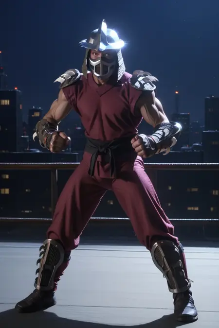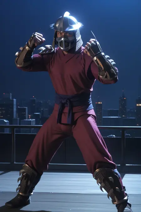 このモデルは、さまざまなソースから約180枚の画像で学習されました。複数のスタイルに対応でき、選択したチェックポイントに応じて高品質な結果を生成します。1987年版のShredderや、『TMNT』および『TMNT 2: Secret of the Ooze』の実写90年代版Shredderを再現可能です。非常に柔軟な性能を備えています。ただし、Oroku Saki(マスクやヘルメットなどを着用していないShredder)の画像は学習に使用していないため、マスクやヘルメットなしで生成しようとすると、有意な結果を得ることはほとんど不可能です。