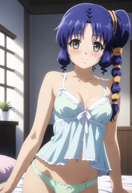 基础提示词:1girl, rana, grey eyes, blue hair, long hair, braid, side ponytail