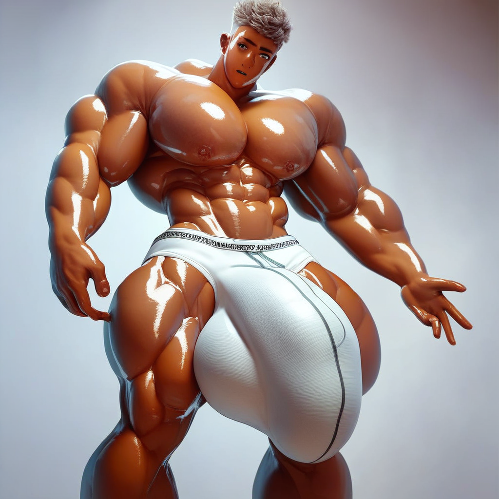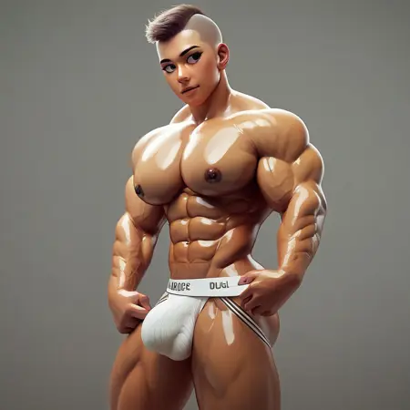 남성스럽고 극도로 근육질인 남자의 이미지를 위해 생성된 모델입니다. 거대한 가슴근육과 선명하게 드러난 복근.