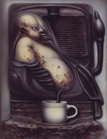 1600 and 3600 epoch versions provided. The latter will give a more 'Giger' feel at the expense of the image becoming more abstract and typical Giger (I'd imagine less flexible blending with other LoRas)