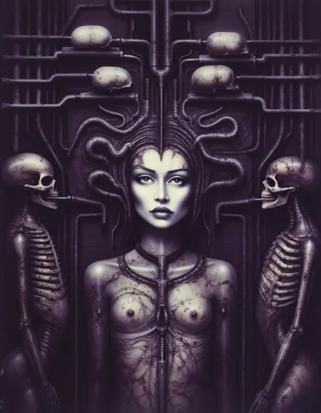 1600 and 3600 epoch versions provided. The latter will give a more 'Giger' feel at the expense of the image becoming more abstract and typical Giger (I'd imagine less flexible blending with other LoRas)