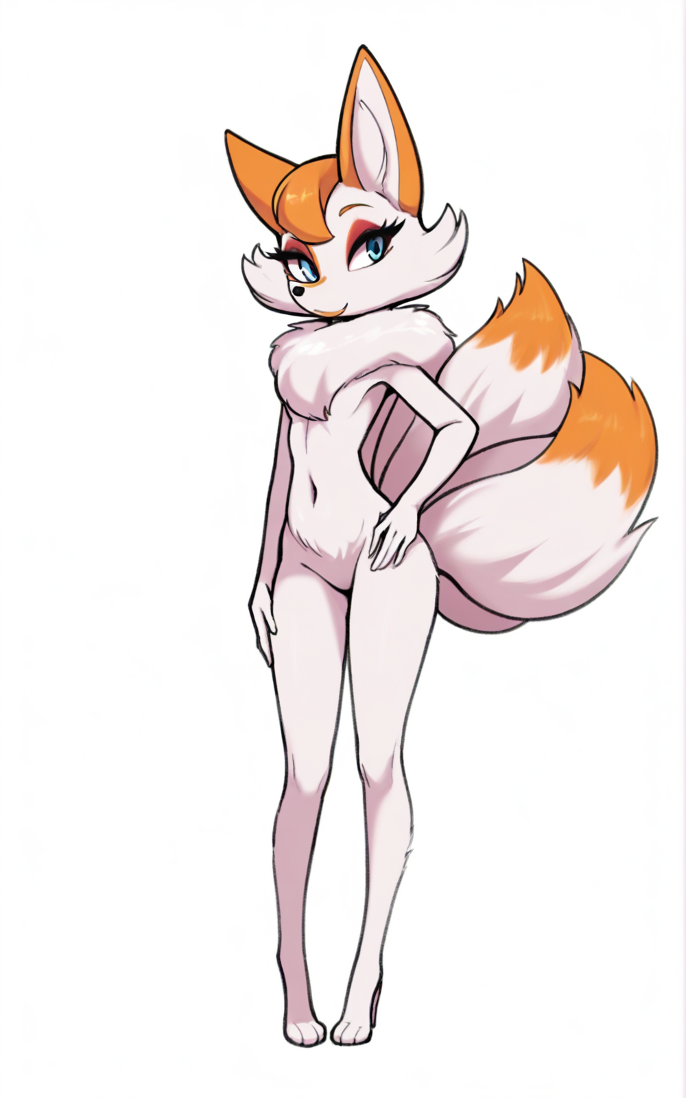 강화 태그: 몸 털, 이톤 털, 코, 여우 소녀, 퓨리 여성, 여러 꼬리, 동물 귀, 흰 털, 퓨리, 털 장식, 목 털 장식, 흰 피부, 메이크업, 파란 눈**