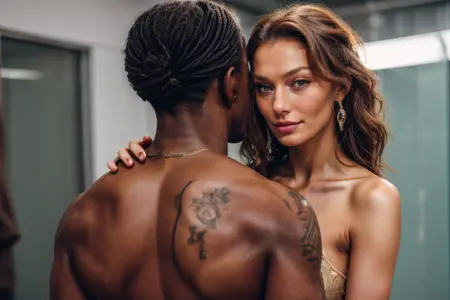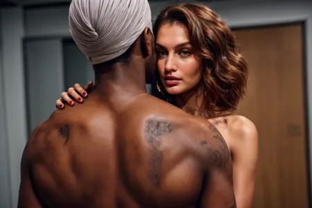 lora:intshldimFT15-step00001000:0.6 {intshldim, }{1girl, }{1boy, }{hetero, }{nail polish, ||||}{dark-skinned male, }{realistic, }{dark skin, |||}{back, }{makeup, }{upper body, }{blurry, }{hug, |}{couple, |}{from behind, |}{photorealistic, |}{looking at viewer, |}{jewelry, |}{bare shoulders, |}{red nails, ||||}{lipstick, ||}