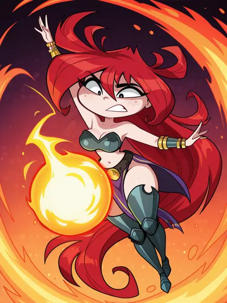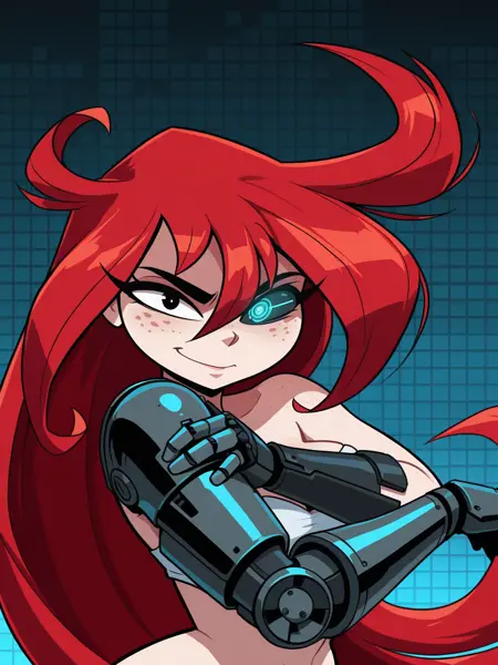 推荐提示词:be_la, 1girl, 长发, 红发, 大眼睛, 黑眼睛, 雀斑