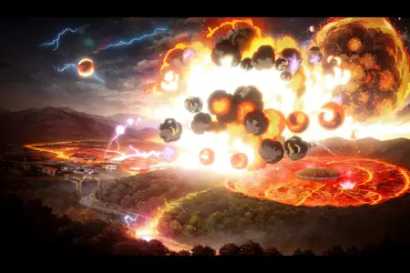 画像はプロンプトのガイドとして使用してください。今後、改良を試みることも考えていますが、爆発、魔導円、それらすべてが連携するというテーマの複雑さのため、完成までに時間かかる可能性があります。