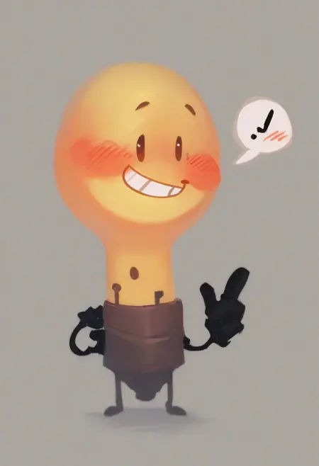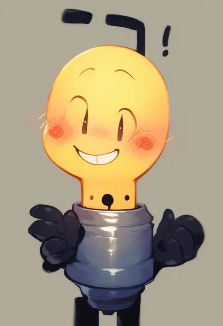기본/예시 프롬프트: score_9, score_8_up, score_7_up, Lightbulb, 검은 다리, 노란 피부, 둥근 머리, 검은 팔, 검은 다리, 점 눈, 붉은 뺨, 웃는 얼굴, 두꺼운 허벅지, 넓은 엉덩이, 혼자