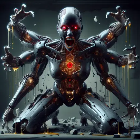 Trying to make a robot, that wants freedom. too many epochs lol, Here are the tags: humanoid robot, 1girl, breaking through a concrete wall, full body, no humans, mechanical parts, mechanical arms, mechanical hands, mechanical fingers, mechanical legs, mechanical feet, debris, flying, glowing, teeth, open mouth, damaged, lips, closed lips, synthetic skin, solo, from behind, from above, ass, squatting, breasts, barefoot, skull nose, nose, robot joints, mechanical wings, horror (theme), oil dripping, grease, close-up, portrait, tears, crying, smile, clenched teeth, grin, laughing, realistic "used more", Photorealistic "used for lips and skin". I used a couple like 3-4 images of frontal views of nude sex dolls for the synthetic skin. Making an update now. I chose epoch 6, but I gave the others in case you wanted to check them out. This is outdated, try Rogue Robot: Female Version 2