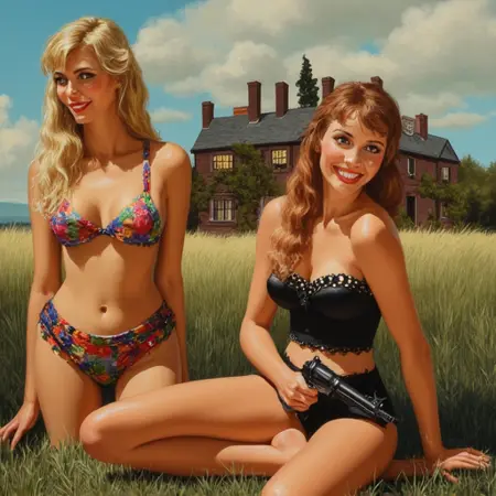 古いパルプ雑誌に使われていた画像のようなアートワークを生成します(ただし、テキストやタイトルは含まない)。