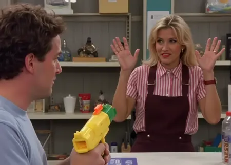 这是一个LyCORIS模型,使用24张90年代情景喜剧的静态帧进行训练。根据我的测试,它还能泛化到90年代“电影风格”或“推销广告风格”的截图。训练所用的图像并不模糊,但尽管如此,某些输出有时仍会略微模糊,可能是由于“90年代”触发词与模糊图像相关联。有时这种模糊效果是符合复古风格的,有时则可能不理想。因此,为了始终获得清晰的图像,请使用支持负向提示的Flux工作流,并将“blur, blurry”作为负向提示。
