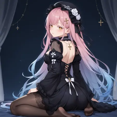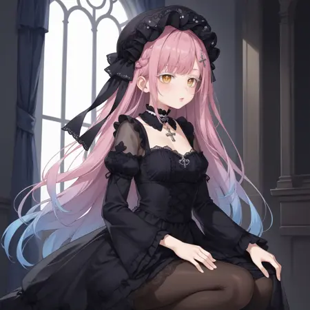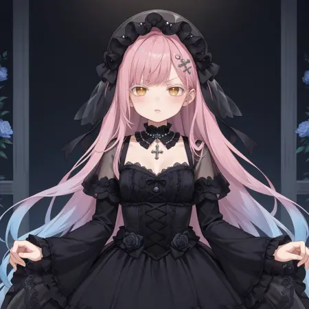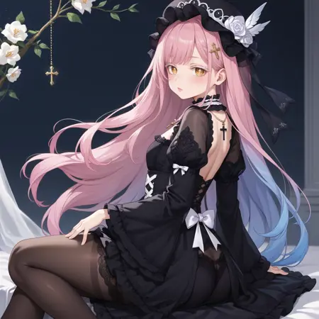 (pink hair, (blue hair:0.55), gradient hair, multicolored hair),