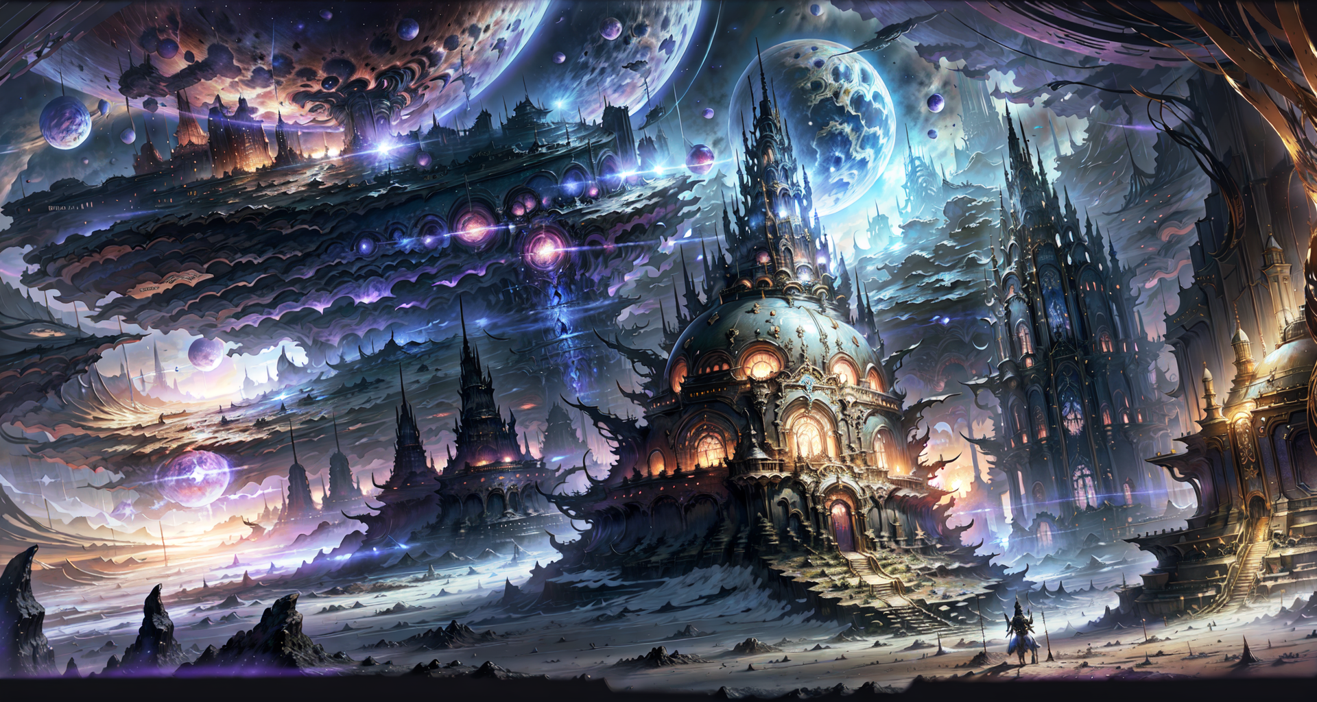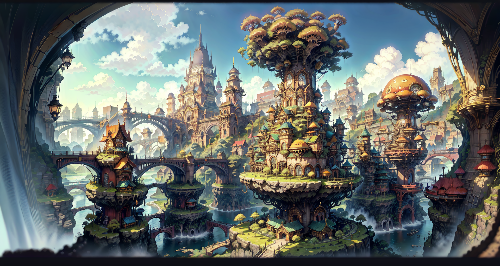 使用FF14载入画面训练,主要为城市和风景绘画。