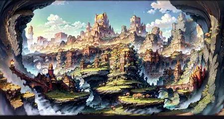FF14 로딩 화면으로 훈련되었으며, 주로 도시와 경관의 그림들.