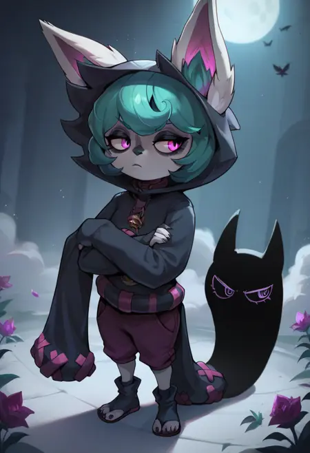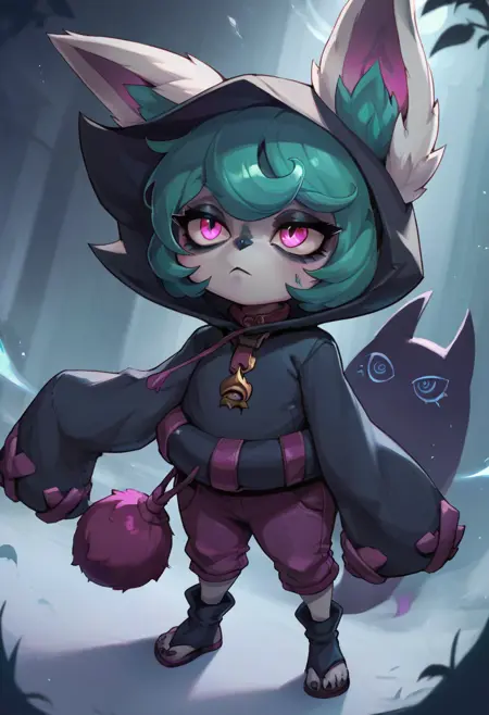 k3nn3n, 1boy, male focus, yordle, hood, hood up, mask, mouth mask, blue eyes,