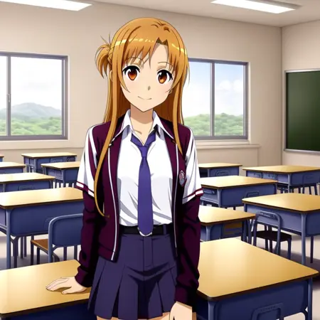 例:1girl, yuuki_asuna, solo, 学生服を着ている, 教室の中で