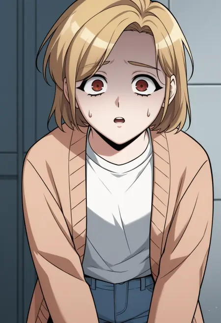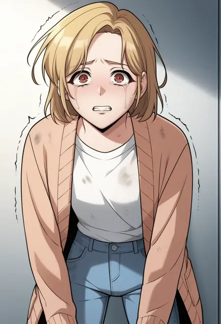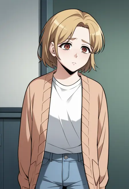 white shirt, open cardigan, long sleeves, blue pants, jeans, denim,