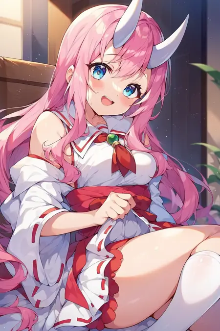 プロンプト: Shuna (Tensura)、ピンクの髪、中くらいの胸、白い角、2本の角