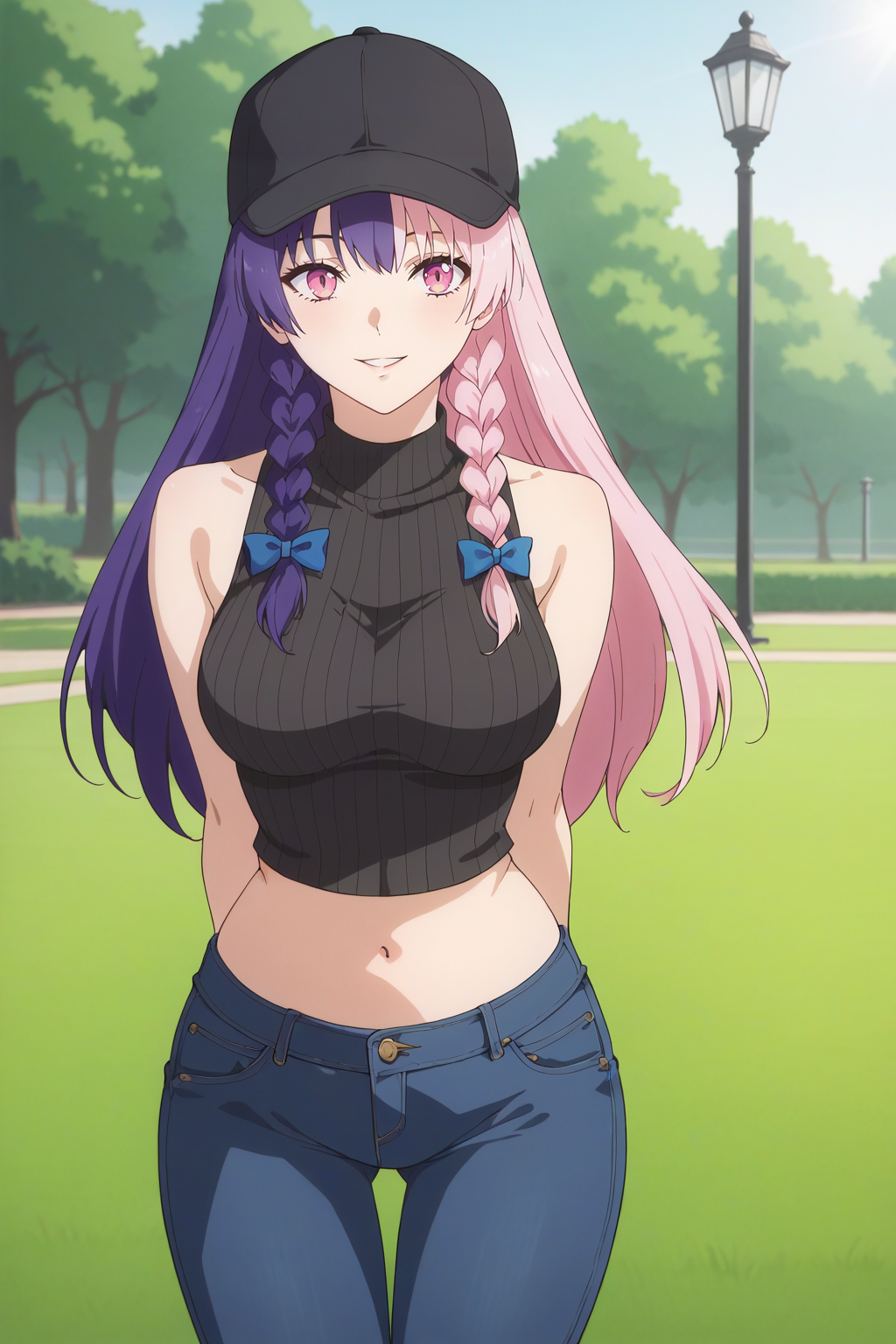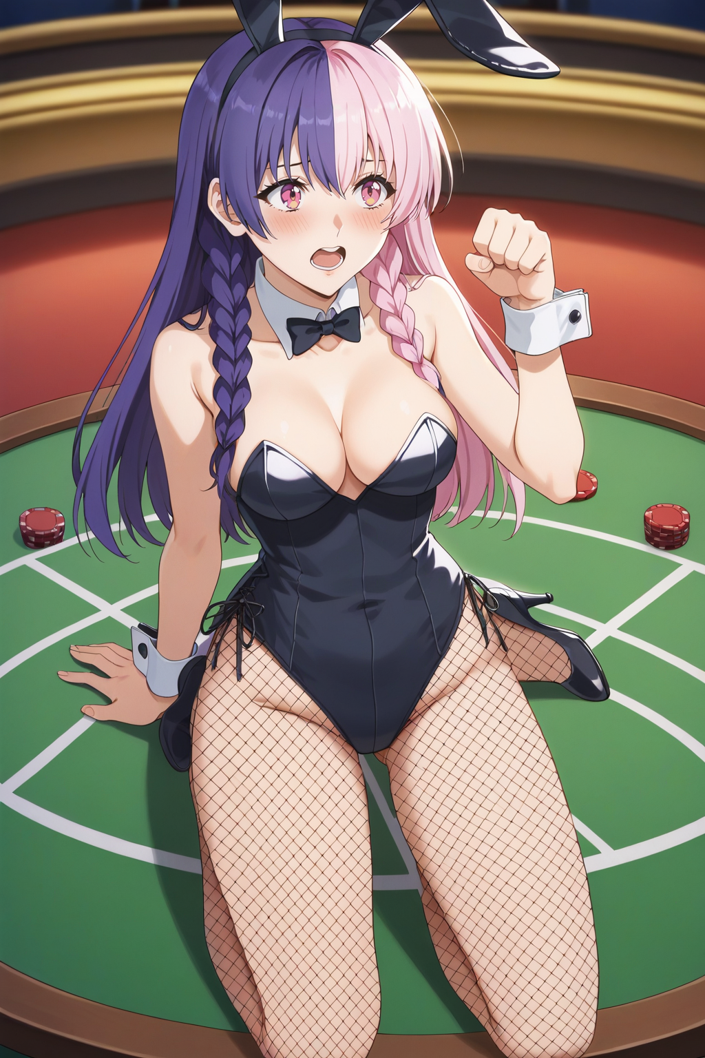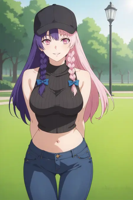 KJO753, pink hair, purple hair, pink eyes, multicolored hair, long hair, braid,
