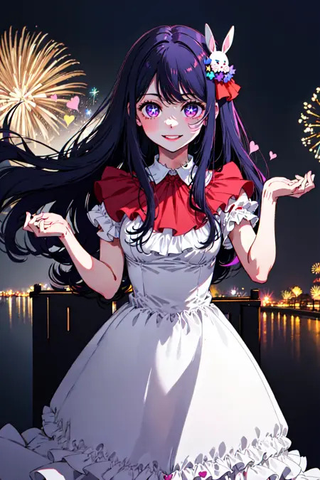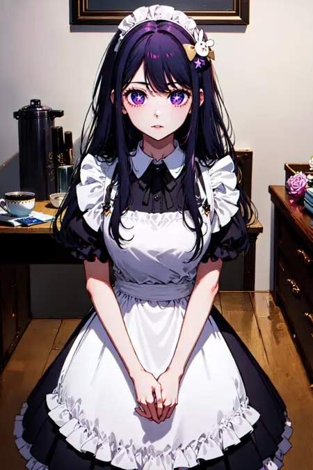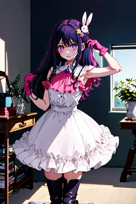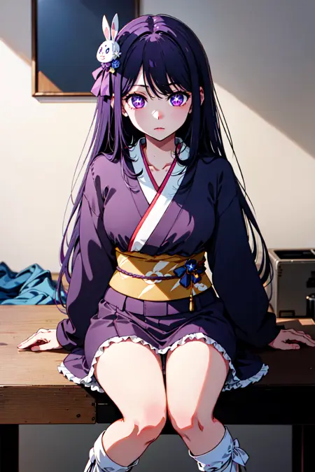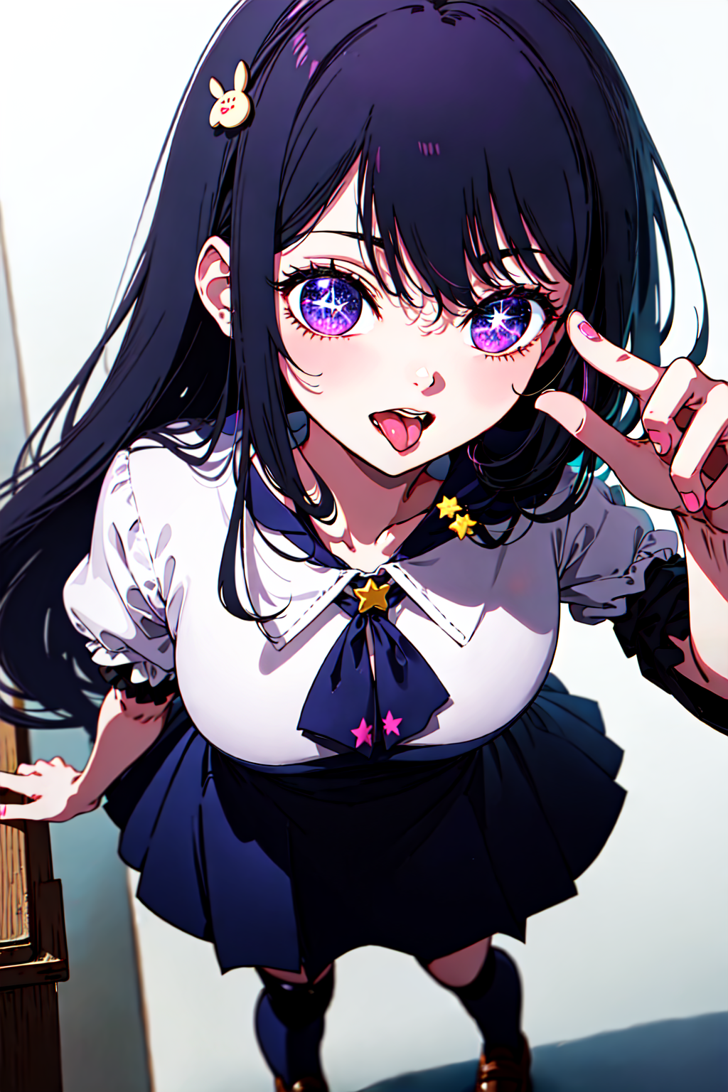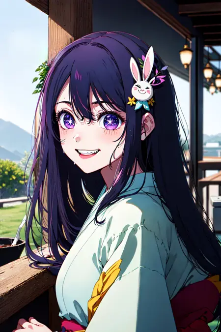 📌プロンプト:星野愛、記号型の瞳、(星型の瞳:1.1)、紫の瞳、きらきらした瞳、(目の中に星:1.1)、目の中の記号、紫の髪、長い髪、 Bunny ヘアアレンジ