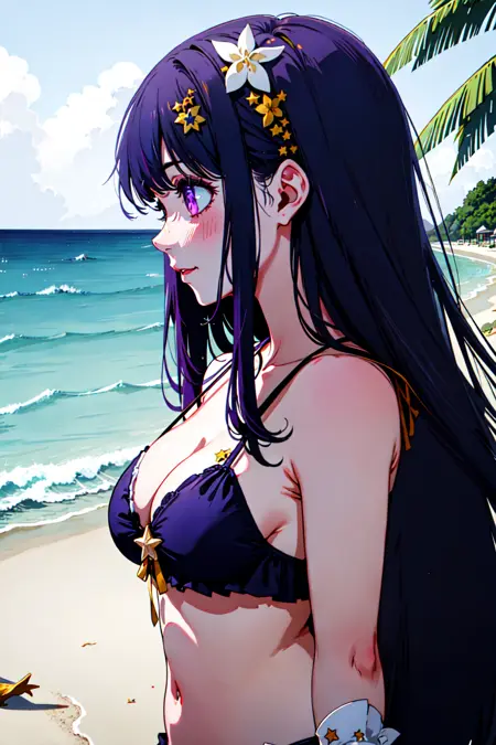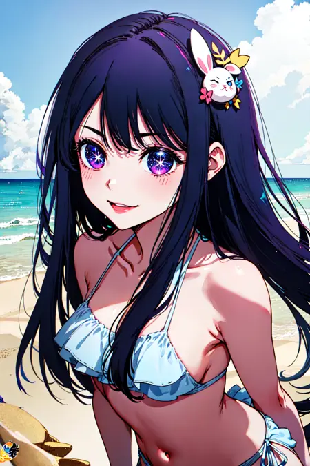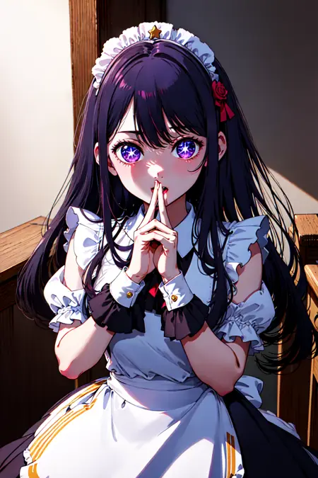 📌 프롬프트: 노시노 아이, 상징 모양의 동공, (별 모양 동공:1.1), 보라색 눈, 반짝이는 눈, (눈 속에 별:1.1), 눈 속에 상징, 보라색 머리카락, 긴 머리카락, 토끼 머리 장식