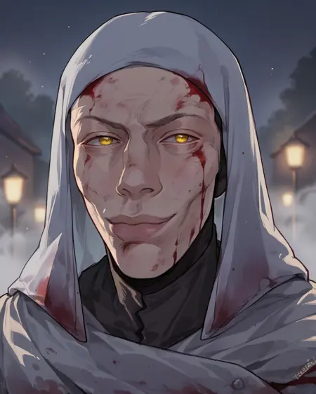 트리거 단어: white-faced_varre, 후드, 마스크, 노란 눈, 흰 얼굴