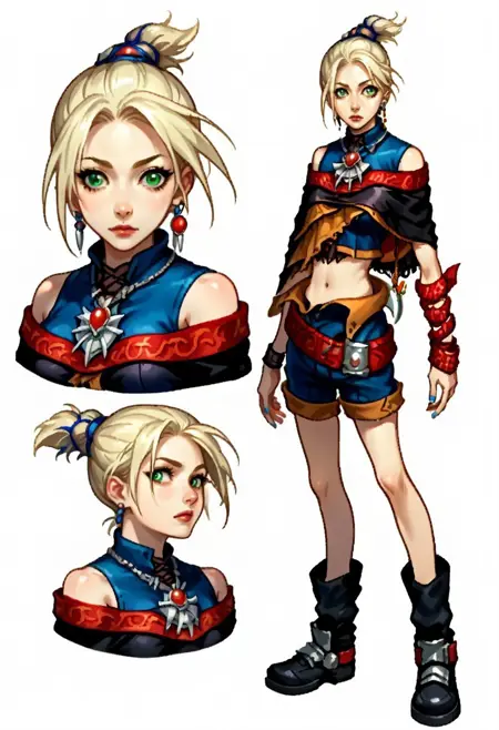 我对这个结果相当惊讶,毕竟这是一个相对复杂的角色设计:即使在第2个epoch时,她就已经能被辨认出来;第3个epoch时,我原本认为会很困难的细节也出现了;第4个epoch时几乎完美无缺(唯一缺失的是符文石)。模型最大的问题在于系带开衩短裤和符文石。我现在完全可以推荐:主要使用干净的3D模型截图来训练马尾LoRA(至少适用于PS2/GCN时代质量的模型)。主要问题有两个:1. 模型所处的姿势会成为默认姿势,因此你必须能调整模型姿态,或在生成时明确指定姿势;2. 模型会强烈倾向于模仿数据集中那几幅2D图像的风格,但这些图像本身训练不足(不过结果并不差)。这很容易通过加载一个风格LoRA解决。