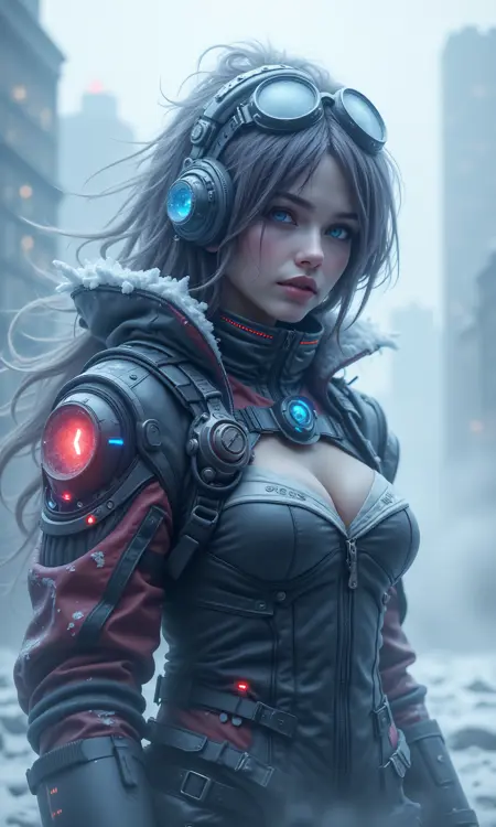 이중 장르 융합: 사이버펑크의 거친 고기술 분위기와 스팀펑크의 화려하며 기계적인 복잡성을 결합하여 독특하고 매혹적인 시각 스타일을 창출합니다.
