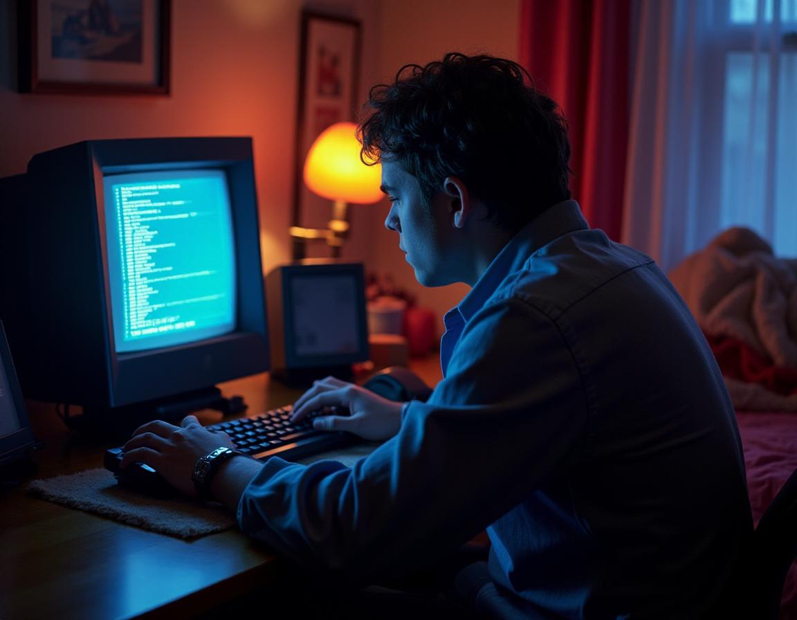 在一组少量的90年代搞怪黑客电影数据集上训练而成。从小就很喜爱那种氛围。