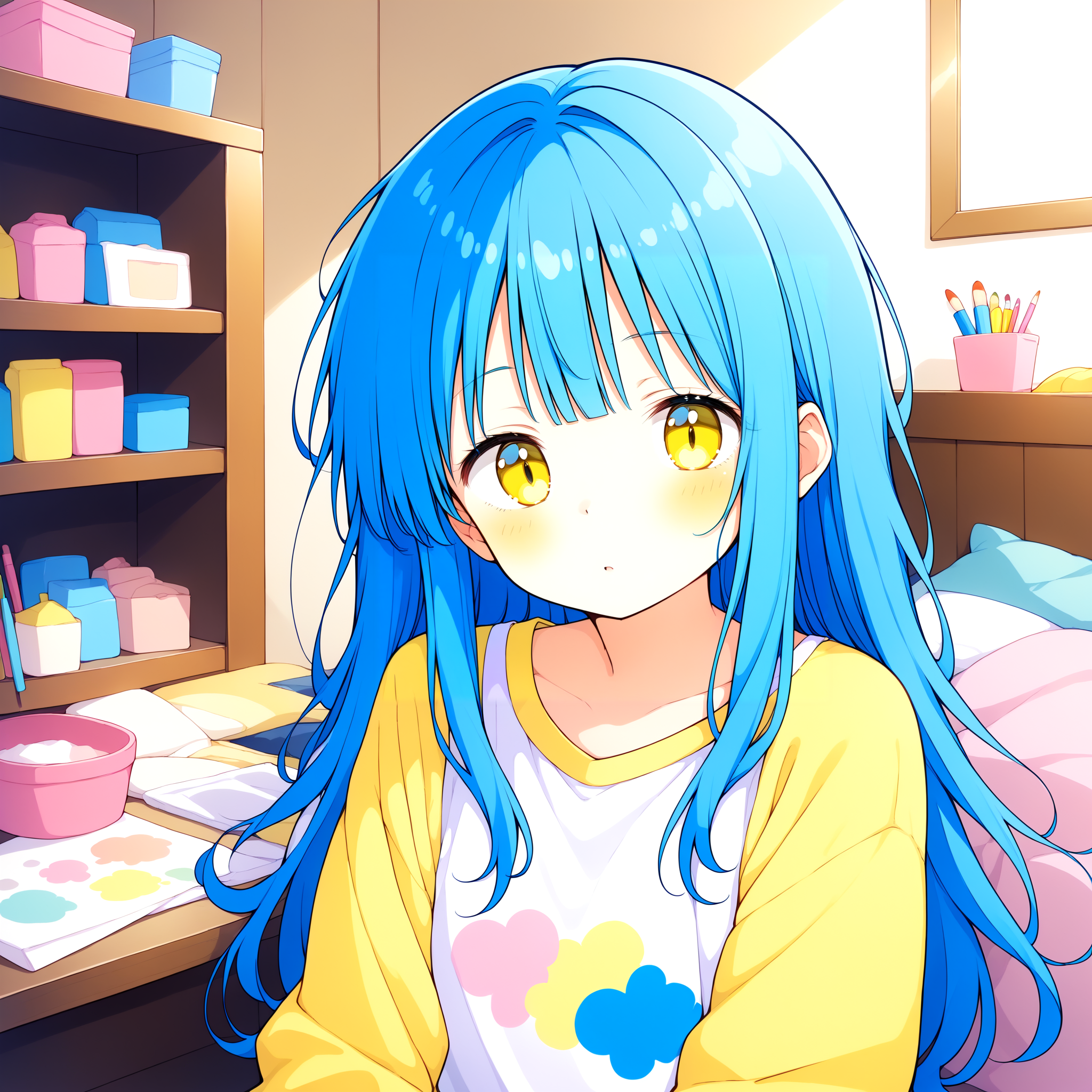 角色采用扁平、插画风格绘制,头发被描绘为一束束状,并从单一方向照明,而衣物和面部的褶皱则通过阴影而非线条来表现。