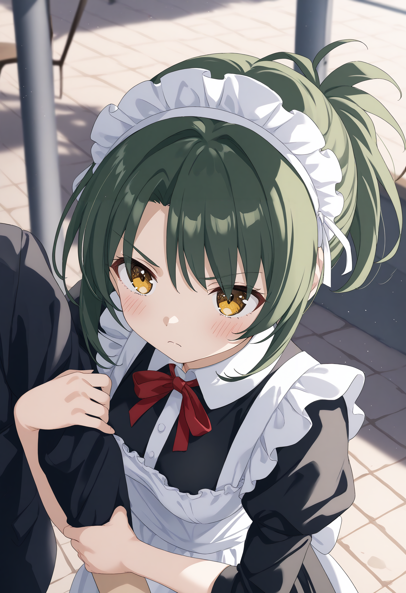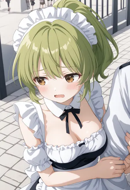 solo focus、out of frame、holding another's armなどを追加すると、効果が高まる可能性があります。