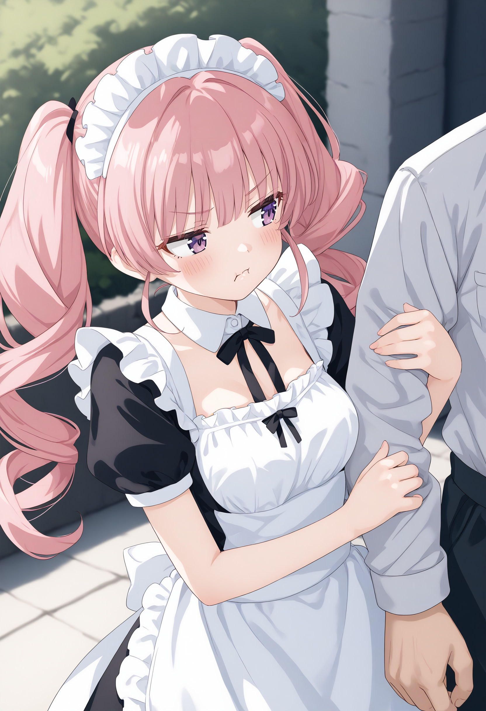 これは、腕だけがフレーム内にいる人物に抱きついて腕を組むLoRAです。