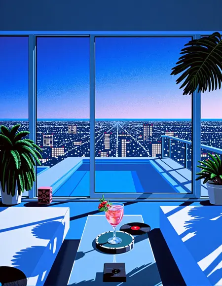 His style can be described as retro, colorful, and laid-back. Nagai's artwork often features scenes of leisure and relaxation, portraying idyllic landscapes, beach settings, and vibrant cityscapes. His use of bold colors and a warm, nostalgic color palette adds to the inviting and comforting atmosphere of his illustrations.