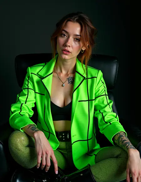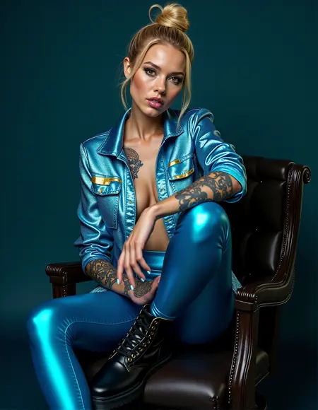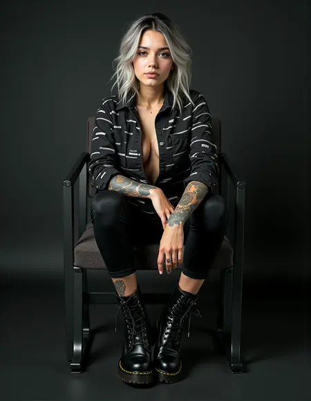 “穿搭”提示包括:衬衫(敞开扣子)、高筒靴、紧身裤、著名国际品牌。
