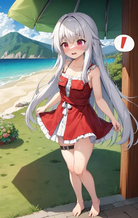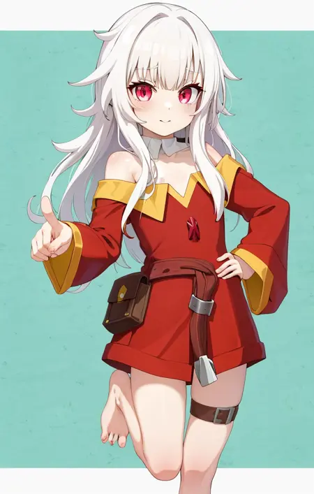 'Clara [Honkai Star Rail], 1girl, red jacket, bare legs, bare feet' - Example prompt.