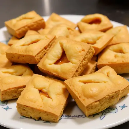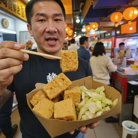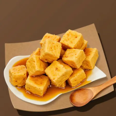 Stinky Tofu English Introduction: Stinky tofu is a well-known and beloved street food in Taiwan, recognized for its strong odor and unique flavor. Despite its pungent smell, which can be off-putting to some, stinky tofu is a delicacy enjoyed by many. It is typically deep-fried and served with pickled vegetables and a spicy sauce. The tofu itself is fermented, giving it a distinct aroma and a rich, savory taste that contrasts with its crispy exterior. Stinky tofu is a staple in night markets across Taiwan and is a must-try for adventurous food lovers.
