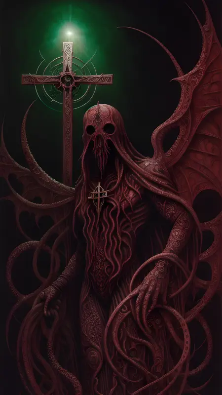 Recommended prompt: Cult of Cthulhu, a dangerous looking girl green, blood on top of a table with a demon head, in the style of giger in the hole, with a lot of blood around, hyperrealism, hyper realistic color photo, realistic photography, dark atmosphere, realistic blood, HDR, ultra detailed, sharp theets, high quality render, ultra realistic shadows, ultra defined
